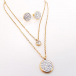 Collar Doble y Pendientes Redondo Cristales, en acero inoxidable para mujer, fiestas y bodas.